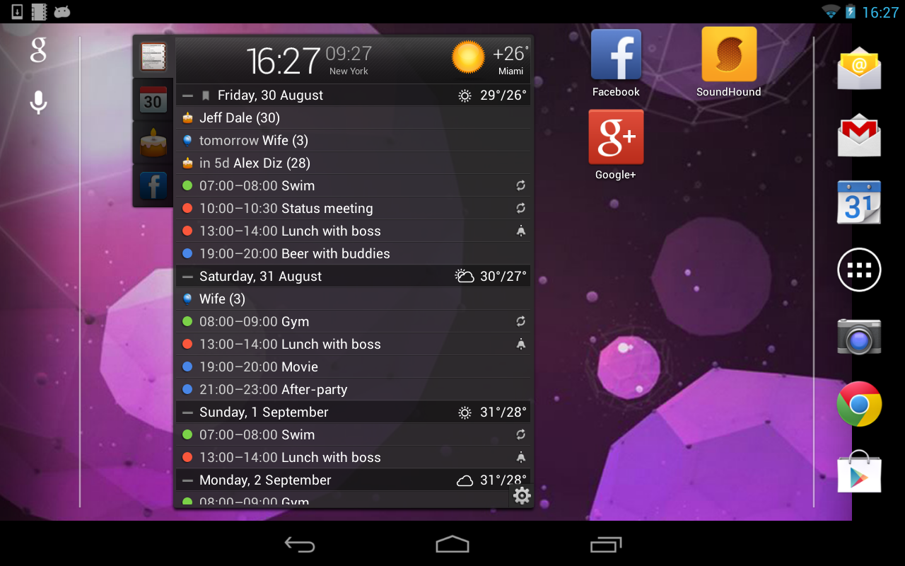 All-in-One Agenda widget shows events of your digital life be it calendar appointments, Facebook events, birthdays or weather forecast, and allows you to manage them with ease.